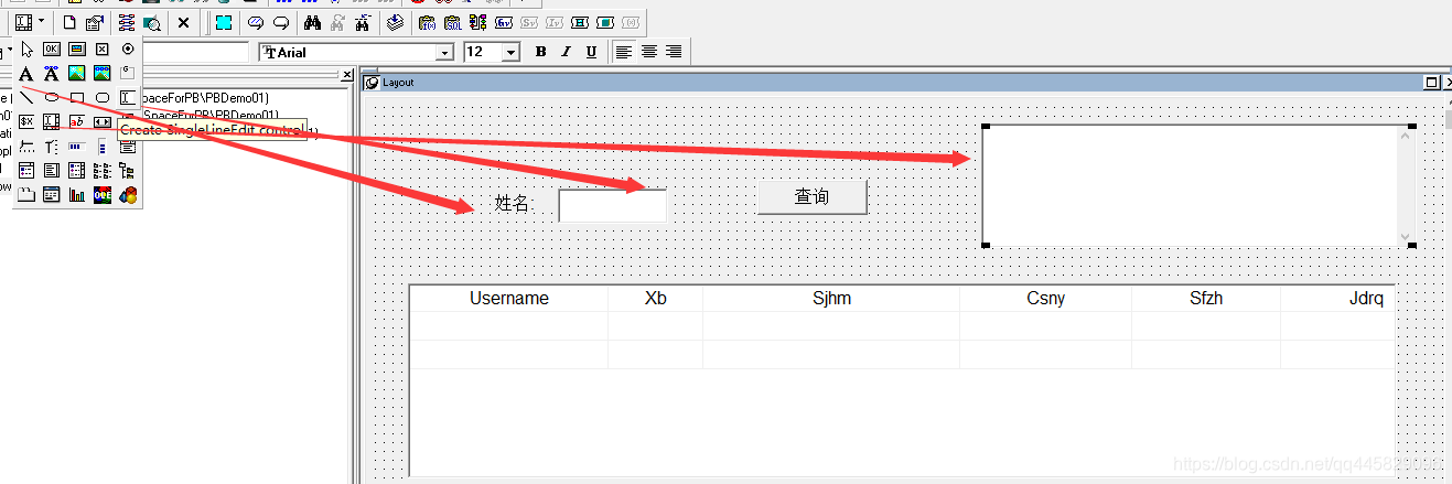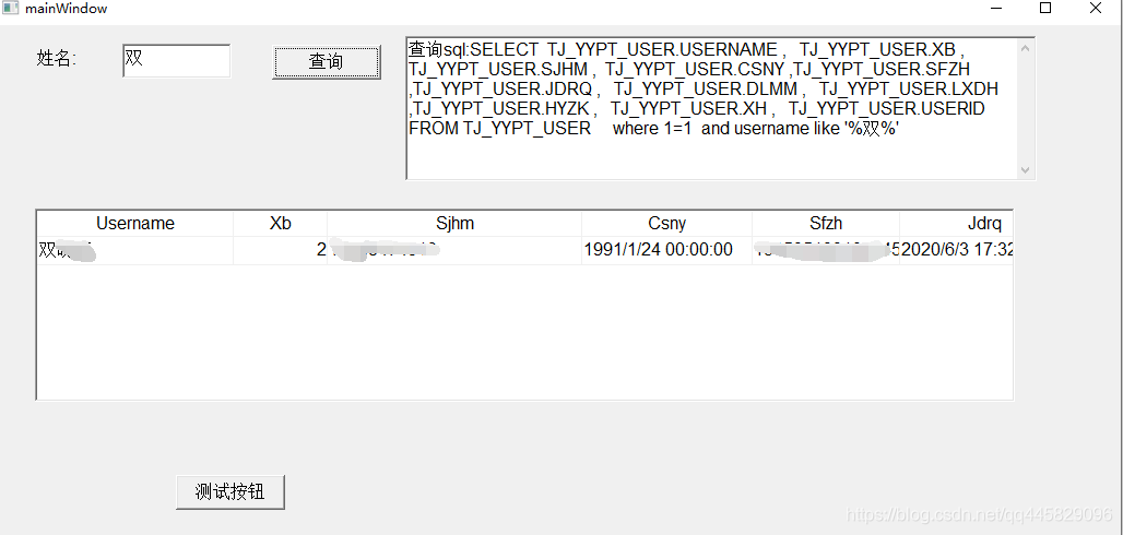 mainwindow新增一个statictext (label),singlelinetext 输入姓名查询条件 multline我用来显示当前查询的sql
