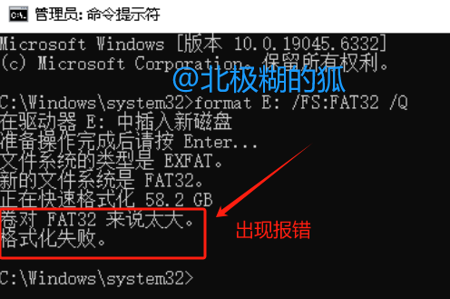 用系统自带format命令突破限制时报错:卷对 FAT32 来说太大。格式化失败。