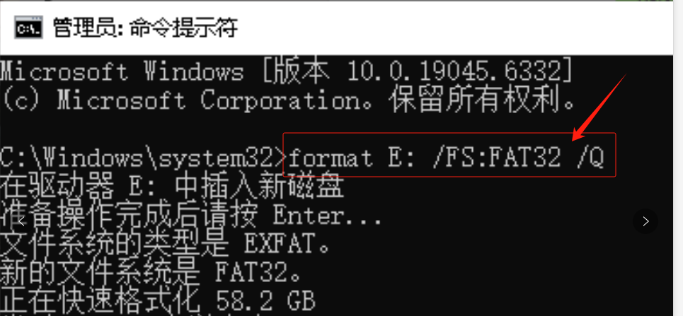 format G: /FS:FAT32 /Q),即可成功。