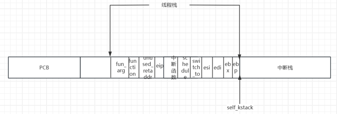 };所以,只要我们初始化好中断栈中的内容,然后使用iret指令退出中断,就可以执行用户进程了,进程是基于线程实现的,在创建线程的过程中,最后是通过线程启动器kthread_start()执行该线程的程序,因此,我们在创建用户进程时让kthread_start()去执行初始化用户进程的中断栈的内容,让中断栈的eip指针指向用户进程要执行的程序,当iret指令退出中断时,就会执行用户进程。