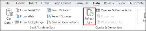 在 数据 菜单中点击 全部刷新(Refresh All) 按钮来解析数据。