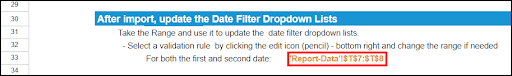 在 Dashboard 工作表中,点击日期范围下拉菜单,然后点击铅笔图标。