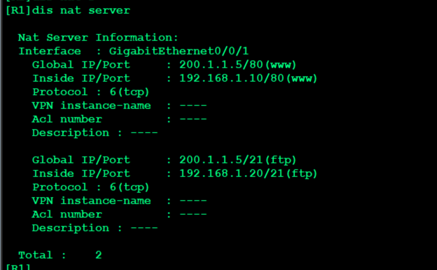 -在边界路由器R1的出接口的配置nat-server(实现外网主机访问内网服务器)