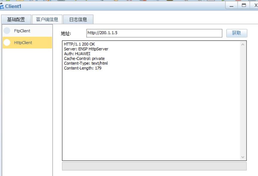 外网:Client1 通过ftp-client1 访问内网ftp服务器 :服务器地址:200.1.1.5