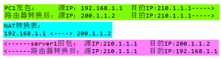 私有IP地址和公有IP地址是1对1转换;一个私有IP地址,绑定一个公有IP地址;静态1对1 并没有从根本上节约IPv4地址