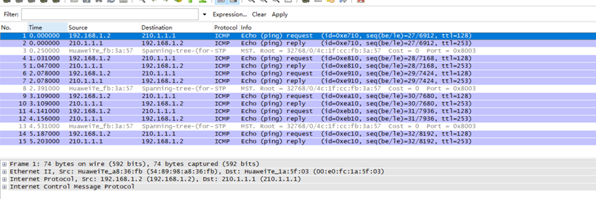 使用“IP地址+端口号”的形式进行转换,使多个私有IP地址可共用一个公网IP地址访问外网。允许多个私有地址同时转换为同一个公有地址,因此也称为“多对一地址转换”或地址复用。NAPT的实现方式主要有EasyIP和地址池NAPT。