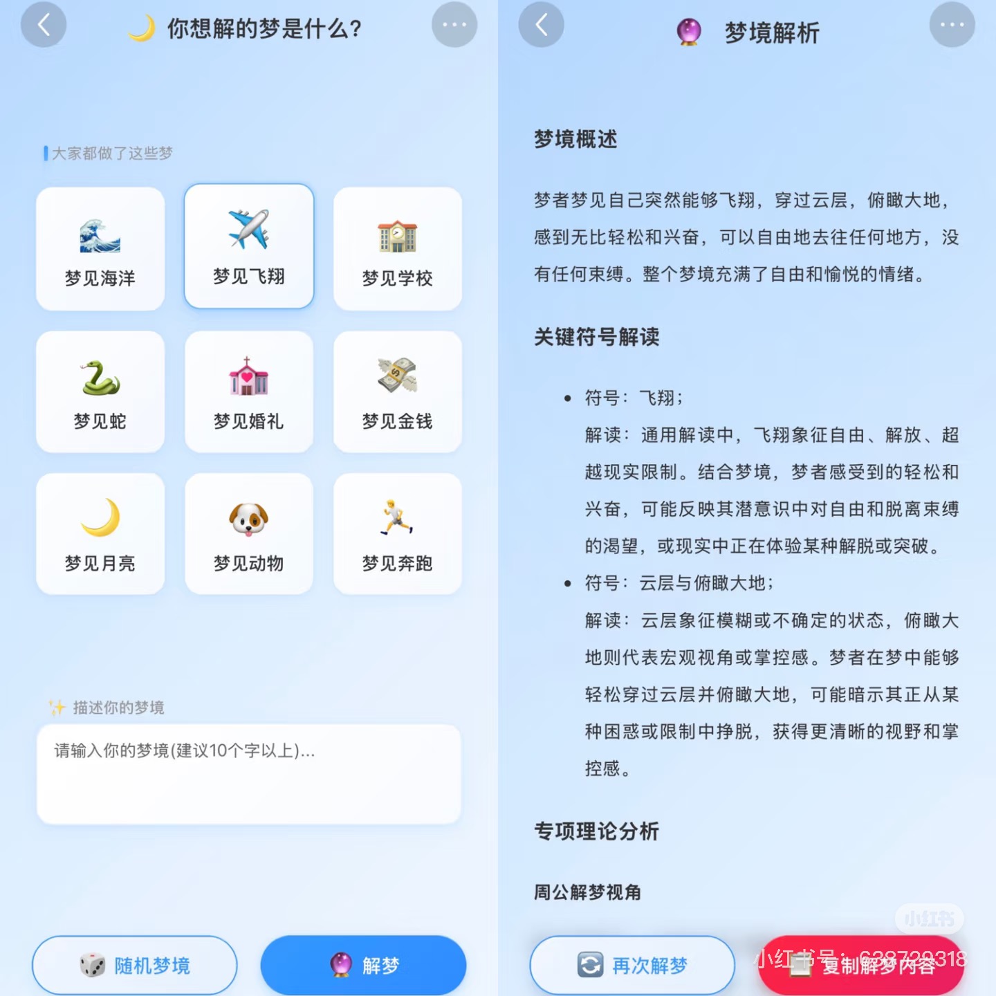 不过就当自己玩玩了,可以使用免费的ai服务进行快速解梦~