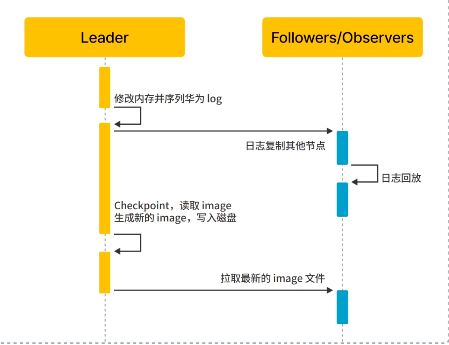 - Follower:提供元数据的读服务,回放Leader的同步日志异步同步元数据;半数以上存活时进行Leader选举