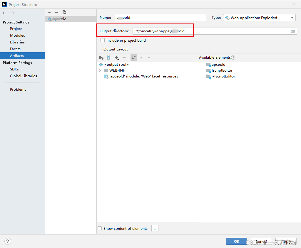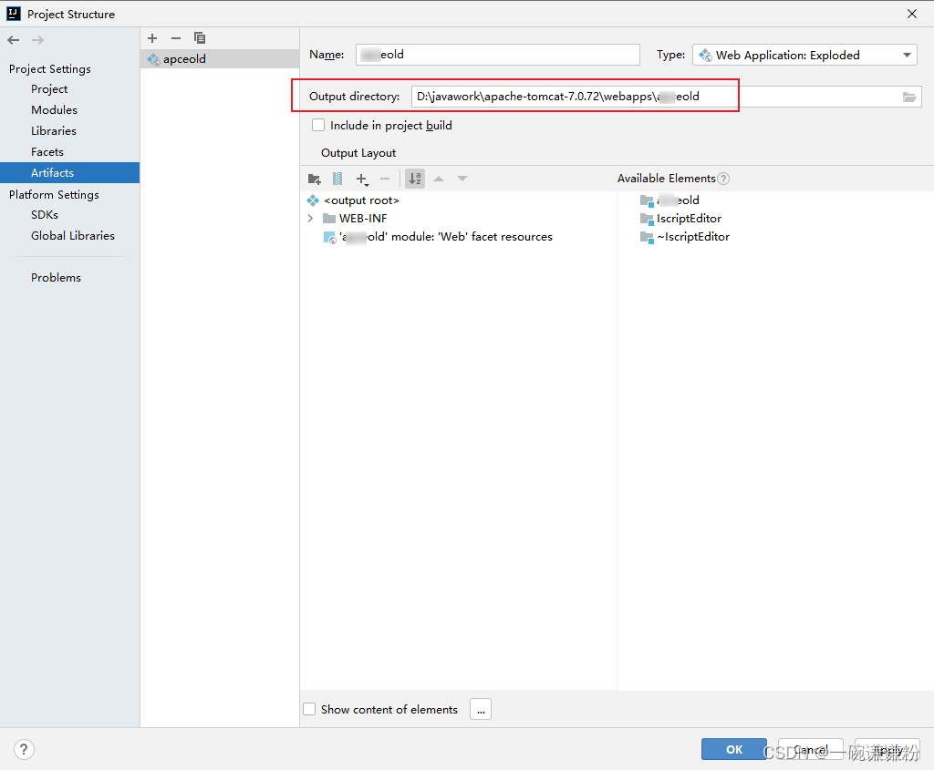 这是idea自动配置的,项目输出到这里,绝对是没有进入到我们自己的tomcat的,所以我们自己要设置一下