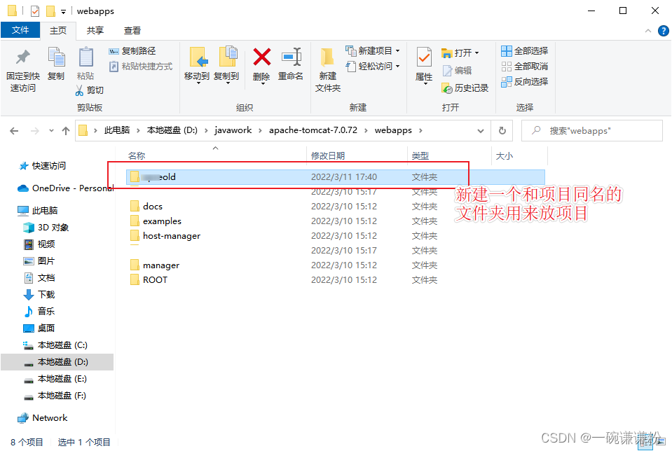 先在tomcat7的webapps目录下,新建一个和项目同名的文件夹用来放项目