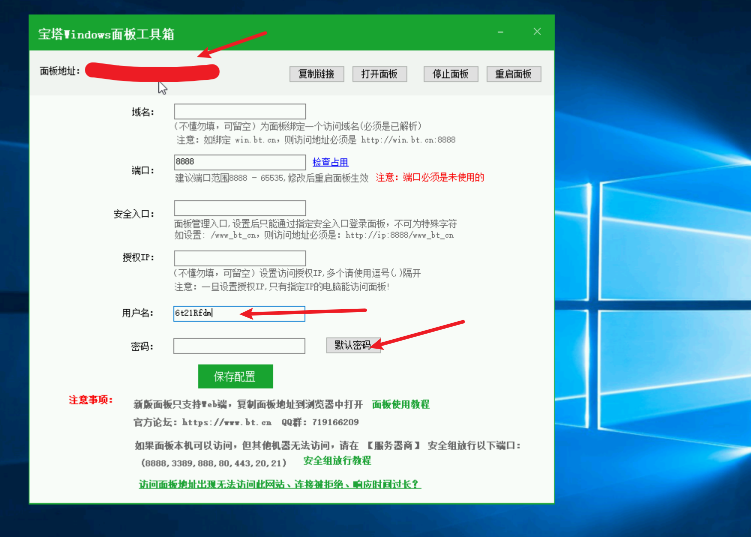 这边把面板的地址在自己电脑的浏览器打开,然后把下面的密码和用户名字改一下