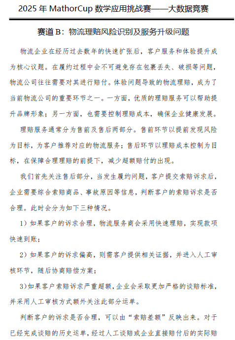 赛道 B:物流理赔风险识别及服务升级问题