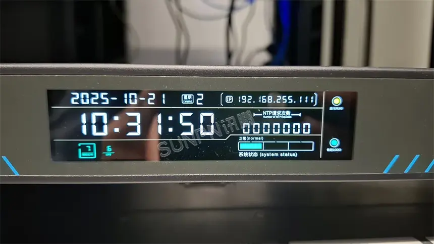 2. 灵活的管理与接口:设备提供Web网页和Windows配置软件两种管理方式,简化了运维。前面板的LCD显示屏可实时显示IP、时间、卫星锁定状态等关键信息,便于状态监控。标准配置提供多路网络接口,并可定制RS232/RS485串口,以满足特殊设备的串口授时需求。