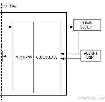 光学交互与环境是传感器与外部环境进行交互的部分,主要包括传感器封装和玻璃、与传感器发射光交互的目标(主要是人体组织)以及环境光,如下图所示