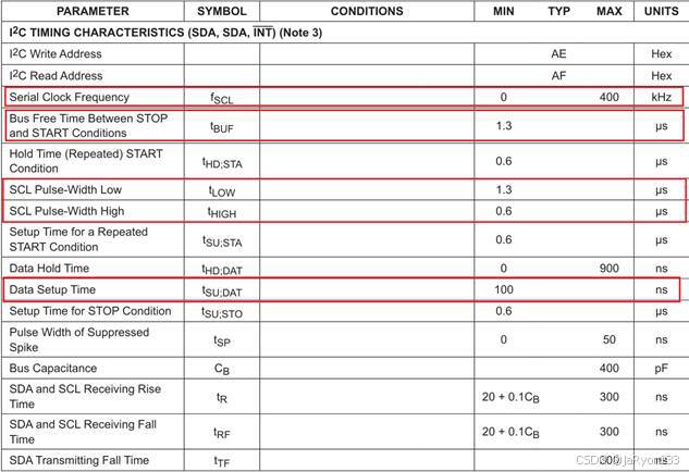 意义:微控制器需配置 I²C 外设为 400kHz 以内,确保通信稳定(超过则可能丢包)。