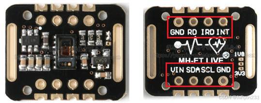 这是MAX30102芯片引脚,而我们使用的这款传感器模块实际引出的引脚如下图所示。