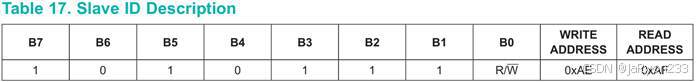 读地址:0xAF(Hex),微控制器需用该地址发起 I²C 传输。