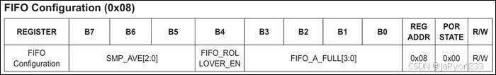 FIFO Configuration寄存器(地址0x08)是用于配置 MAX30102 芯片中 FIFO相关参数的寄存器,其结构如下图所示。