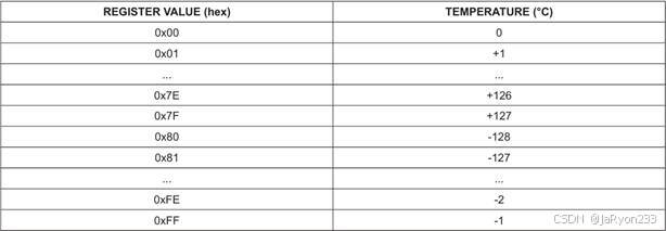 温度整数寄存器用于存储温度的整数部分,采用二进制补码格式,每一位对应 1℃。读取温度数据时,需结合该寄存器与温度小数寄存器的值,通过公式TMEASURED=TINTEGER+ TFRACTION