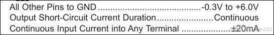 Continuous Input Current into Any Terminal:±25mA,任何引脚的连续输入电流极限,微控制器向器件引脚输入电流时(如 I2C 的上拉电流等情况),需控制电流不超过此值。