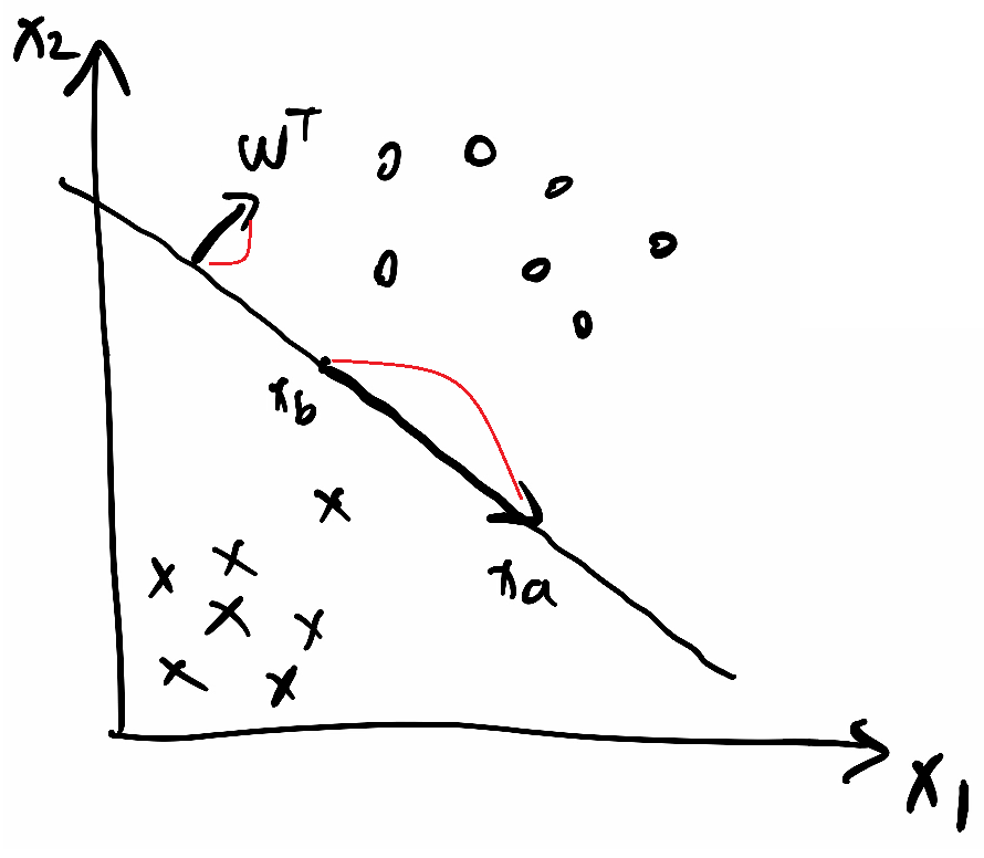 ③④相减得到wᵀ·(xa-xb)=0⑤