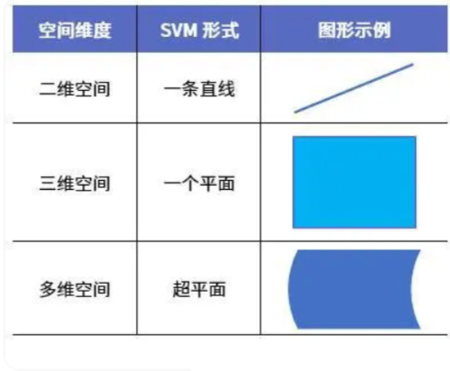 对于不同维度空间,SVM的形式特点也不同,具体表现如下:
