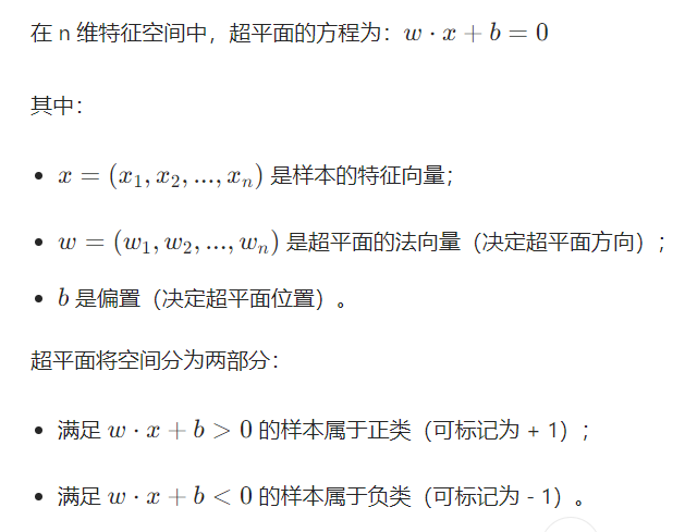 SVM的核心是在特征空间中寻找一个超平面,使得: