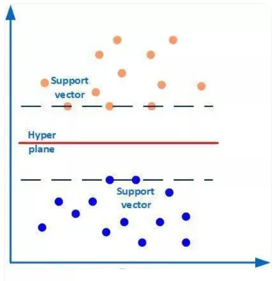 SVM(Support Vector Machine,支持向量机),SVM本质模型是特征空间中最大化间隔的线性分类器,是一种二分类模型。其核心思想是在特征空间中找到一个最优超平面,将不同类别的样本分隔开,且使这个超平面与两侧最近样本(支持向量,支持向量就是离分类超平面(Hyper plane)最近的样本点)的距离(即 “间隔”)最大化。