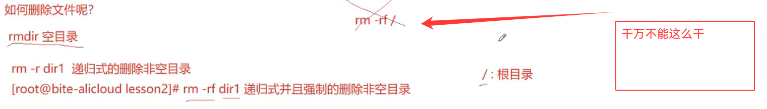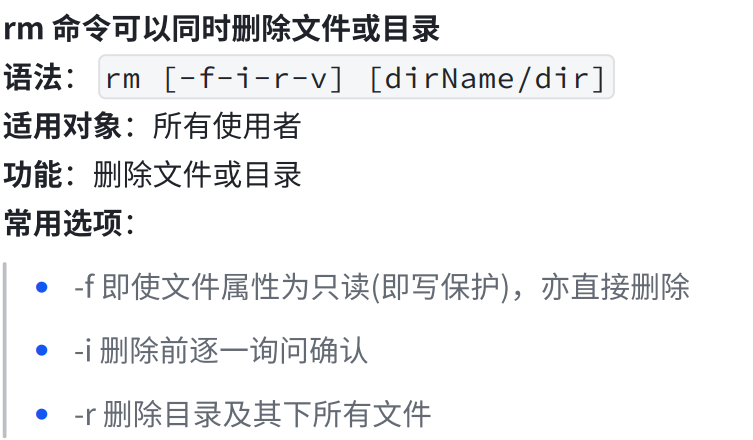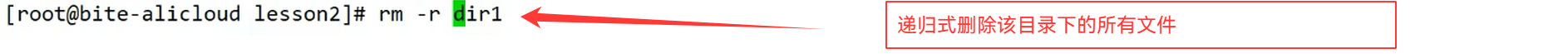 rm -rf dir1 : 递归删除dir1内部的所有内容,且不进行提示