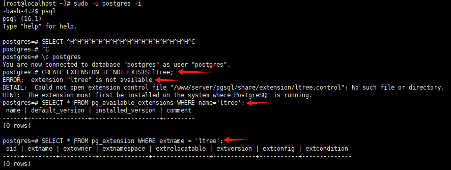 win11上我装了PostgreSQL 16.9,然后CREATE EXTENSION IF NOT EXISTS ltree;直接就能启用ltree,但在CentOS7.9上报错了,用SELECT * FROM pg_available_extensions WHERE name='ltree';和SELECT * FROM pg_extension WHERE extname = 'ltree';也查不到ltree。