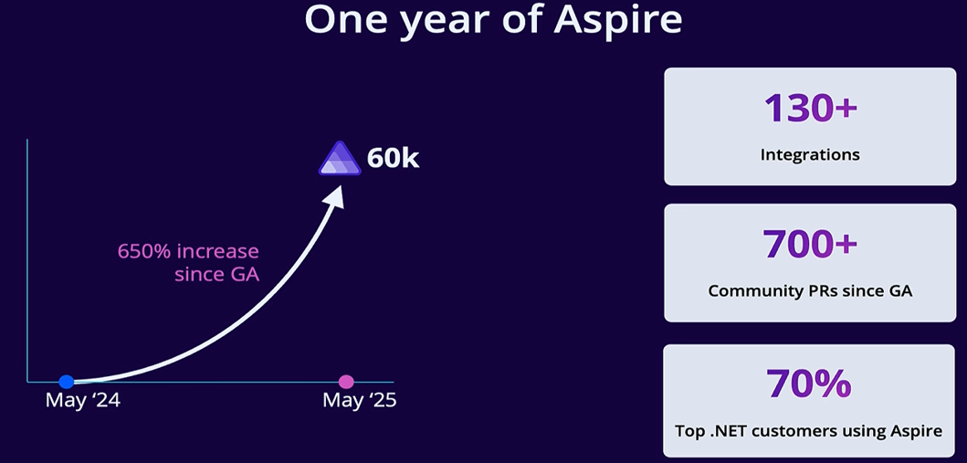 .NET Aspire 推出快两年时间了,感觉更新也挺多的。.NET Aspire已经有130多个integrations,同时使用的人数也增长了一些。