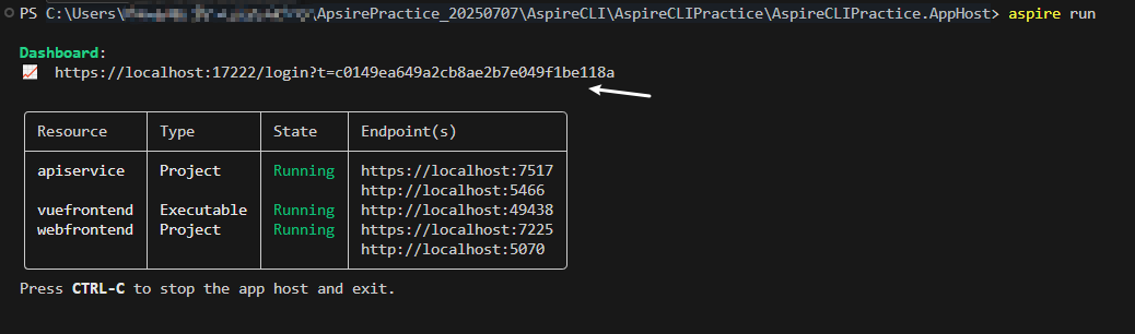 1) 最后使用aspire run命令启动项目