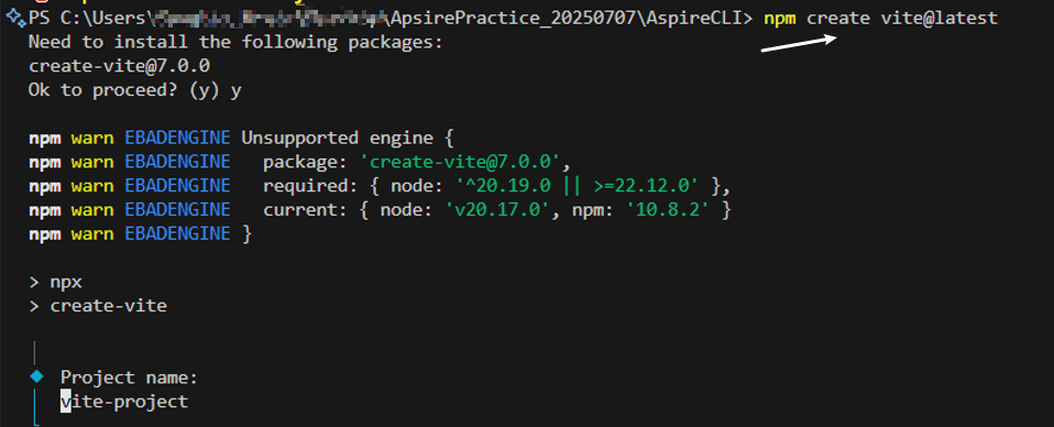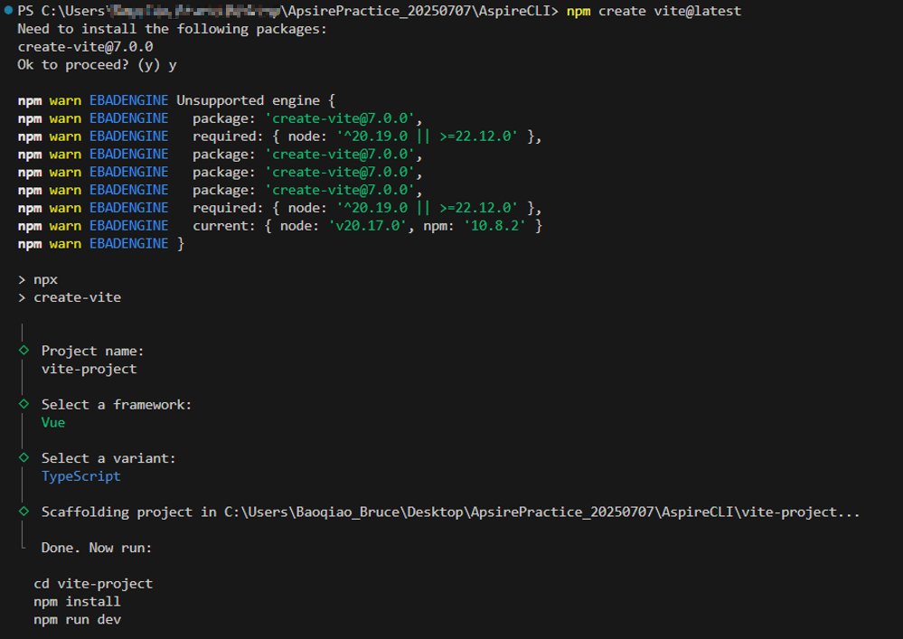 npm create vite@latest运行结果如下图所示,
