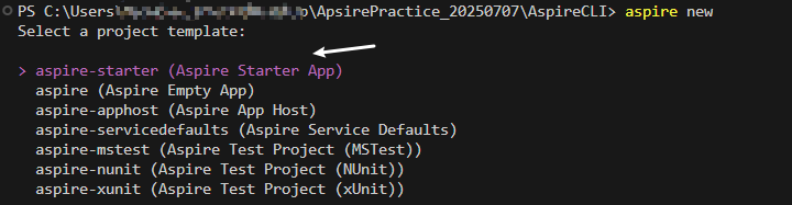 aspire new在project template中,选择第一个选项,