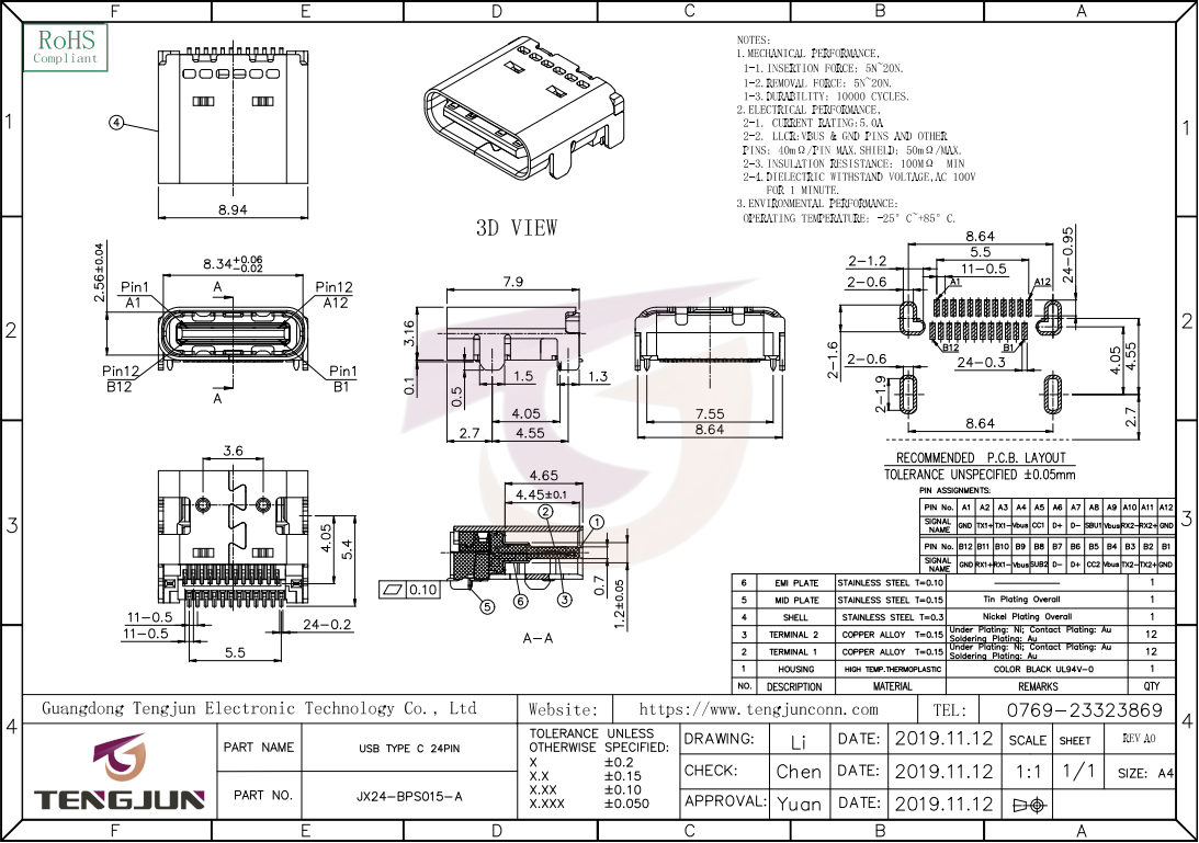 TENGJUN-TYPE-C 24PIN(JX24-BPS015-A)连接器深度技术解析