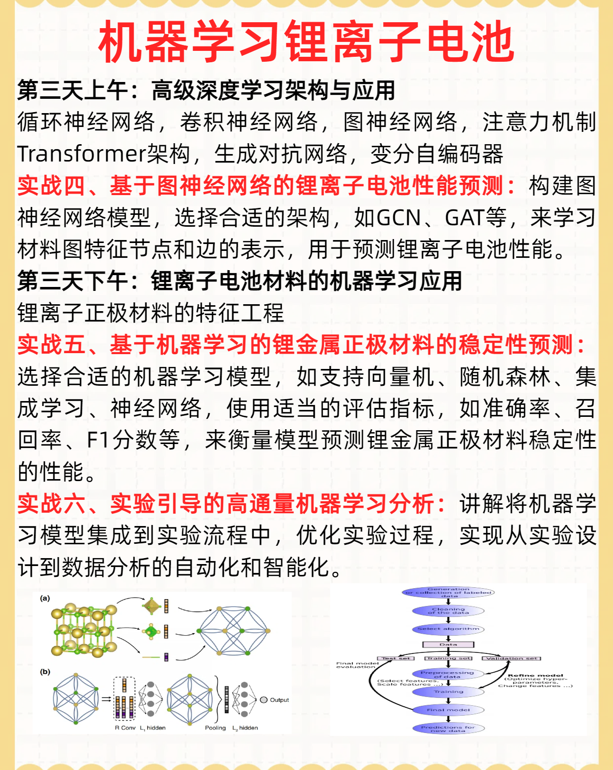 机器学习在锂离子电池研究中正成为颠覆性技术,通过多尺度建模与高通量计算深度融合,显著加速了电极材料、电解质体系及界面结构的优化进程。当前研究聚焦于构建材料基因工程数据库,结合图神经网络与物理信息神经网络,精准预测电极材料的容量、扩散能垒及界面稳定性等关键参数。例如,通过主动学习框架筛选高镍三元正极的掺杂改性方案,或利用时序模型解析固态电解质界面膜的生长动力学。此外,机器学习驱动的高维特征分析揭示了电极微观结构与电化学性能的构效关系,并借助生成对抗网络逆向设计新型电解质组分。该领域正从传统"性能预测"向"机制发现-动态优化-逆向设计"范式转变,为突破能量密度极限与安全性瓶颈提供新范式。