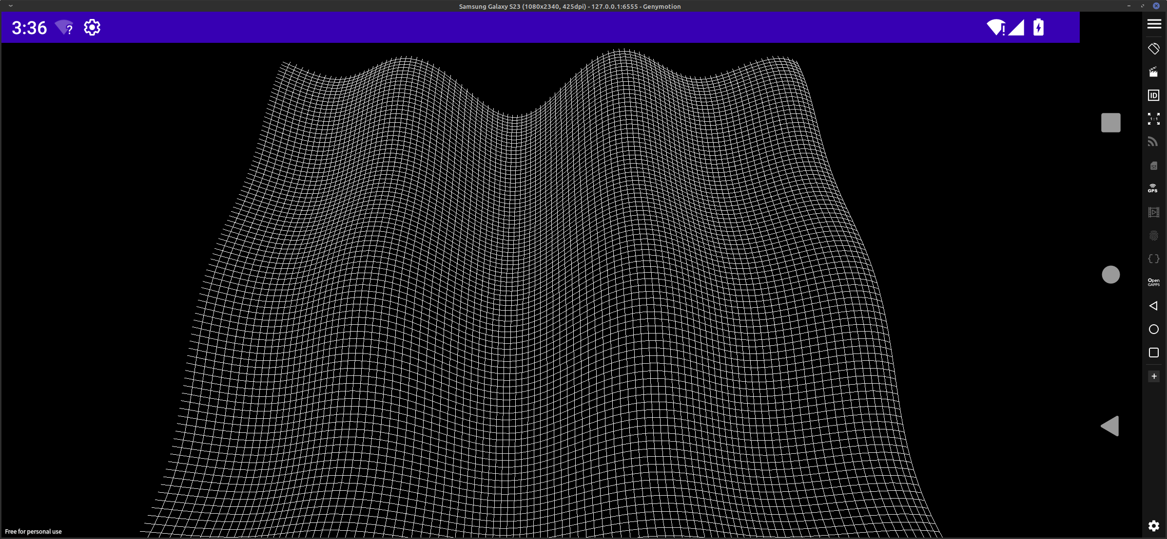 uniform mat4 uMVPMatrix;uniform float uTimeStamp;attribute vec4 vPosition;varying float vDepth;void main() {vec4 point = vec4(vPosition);float t = uTimeStamp / 400.0;float z0 = ( sin(radians(vPosition.x * 100.0) + t) + cos(radians(vPosition.y * 50.0) + t / 2.0) ) * 0.5;float z1 = ( sin(radians(vPosition.x * 50.0) + t / 4.0) + cos(radians(vPosition.y * 60.0) + t / 3.0) ) * 0.5;point.z = z0 + z1;gl_Position = uMVPMatrix * point;vDepth = point.z;}