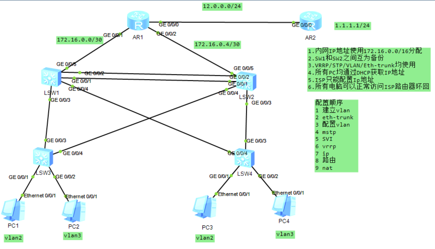 HCIP第二次作业(VRRP/STP/VLAN/Eth-trunk/NAT)