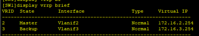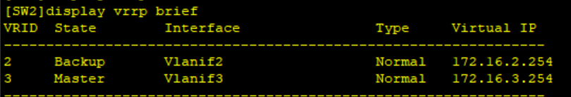 [SW1-Vlanif3]vrrp vrid 3 virtual-ip 172.16.3.254