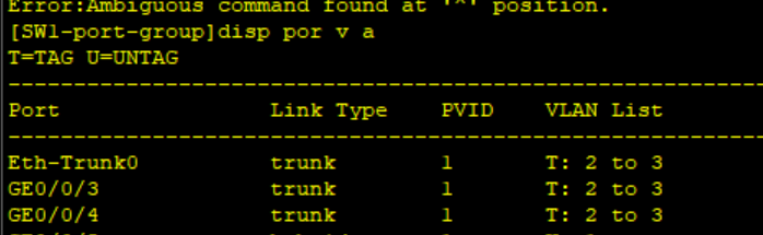 [SW1]port-group group-member GigabitEthernet 0/0/3 GigabitEthernet 0/0/4 Eth-Trunk 0