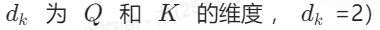 计算 Q 与 K 转置的点乘,得 3×3 注意力分数矩阵,除以