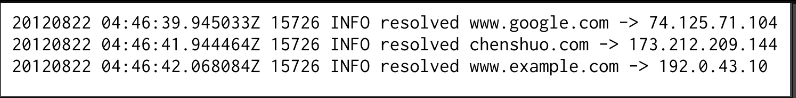 {LOG_INFO << "resolved " << host << " -> " << addr.toIp();