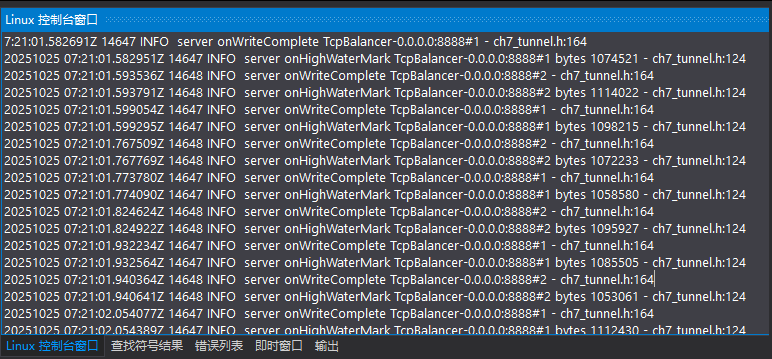 运行后,就数据传输出 两个chargen转发的数据差不多