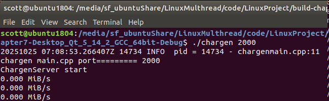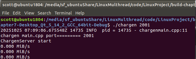 # 终端2:启动第二个 chargen 服务器,监听 2001 端口 ./chargen 2001