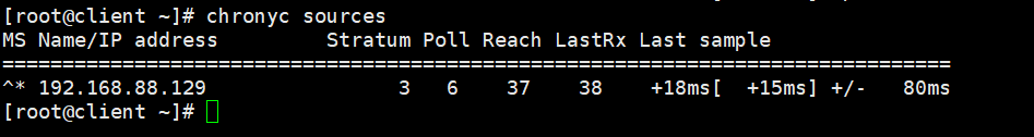 ^* 192.168.88.129 3 6 37 38 +18ms[ +15ms] +/- 80ms