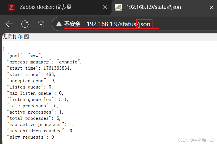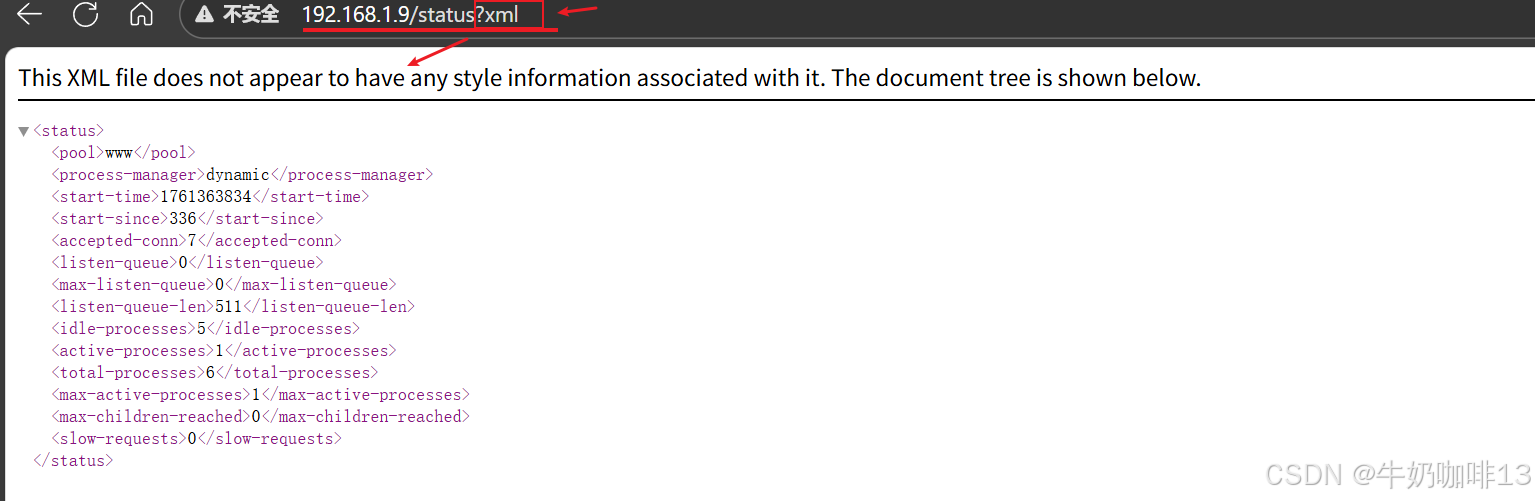 http://192.168.1.9/ping#注意nginx+php-fpm的状态页可以显示多种格式(json、xml、html)