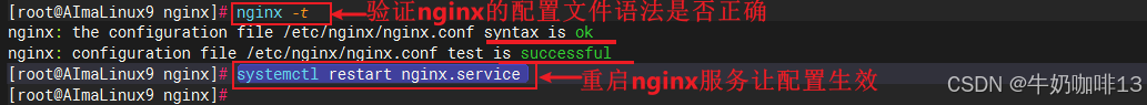 nginx -t#3-验证nginx.conf的配置都正确后重启nginx服务