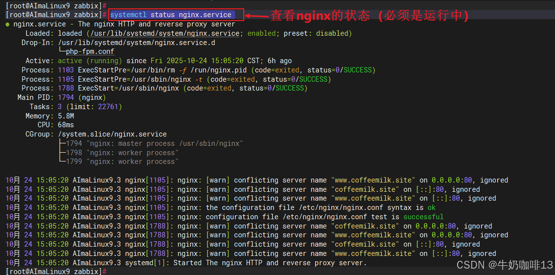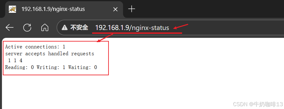 systemctl status nginx.service#4-查看当前系统的IP地址后查询(使用Nginx的服务器IP/nginx-status;如:http://192.168.1.9/nginx-status)