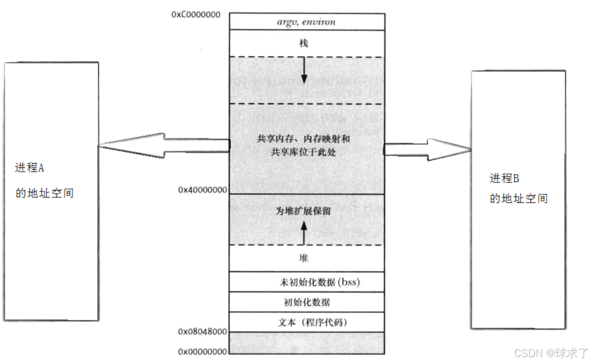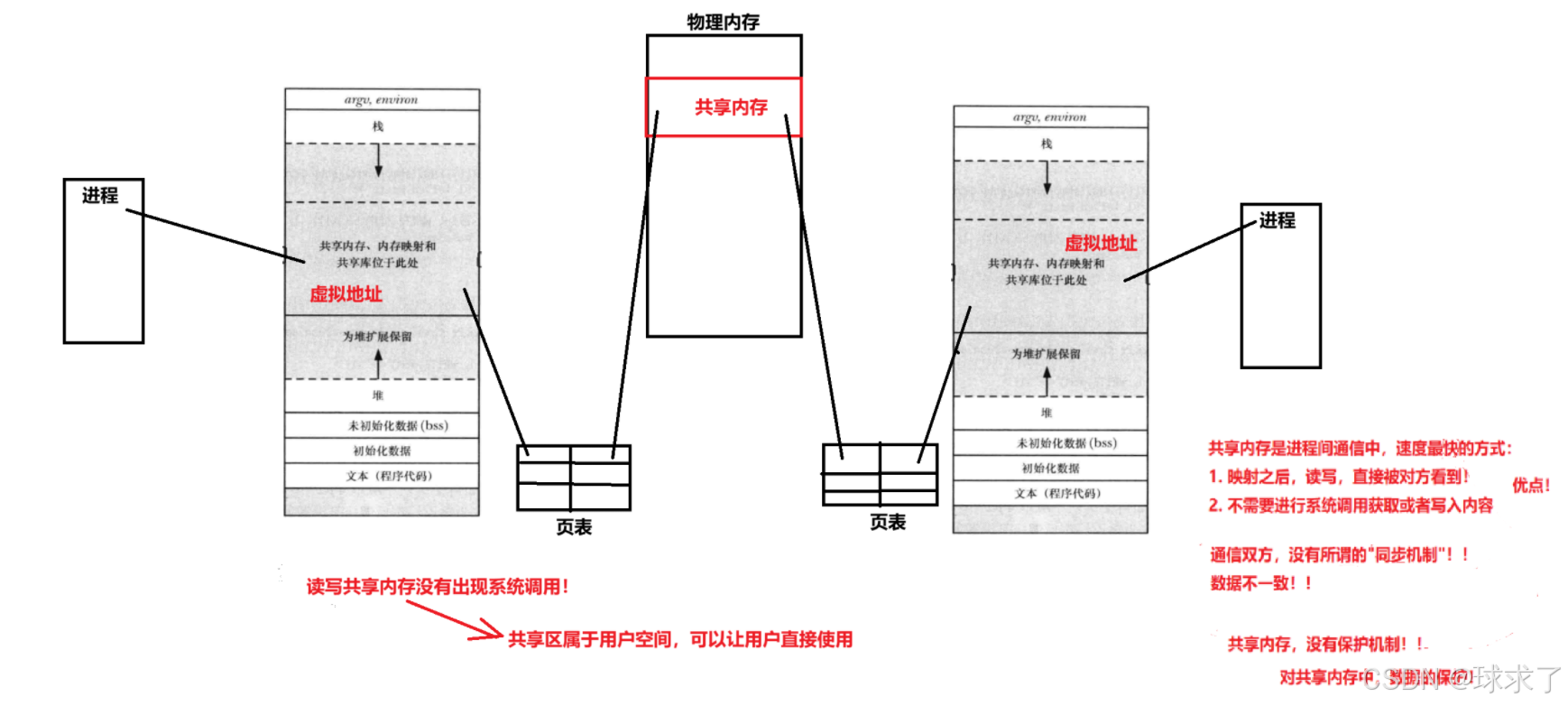 共享内存区是最快的IPC形式。一旦这样的内存映射到共享它的进程的地址空间,这些进程间数据传递不再涉及到内核,换句话说是进程不再通过执行进入内核的系统调用来传递彼此的数据。