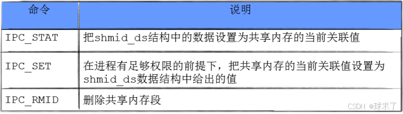 ipcrm -m [shmid] 命名,删除共享内存标识为shmid的共享内存
